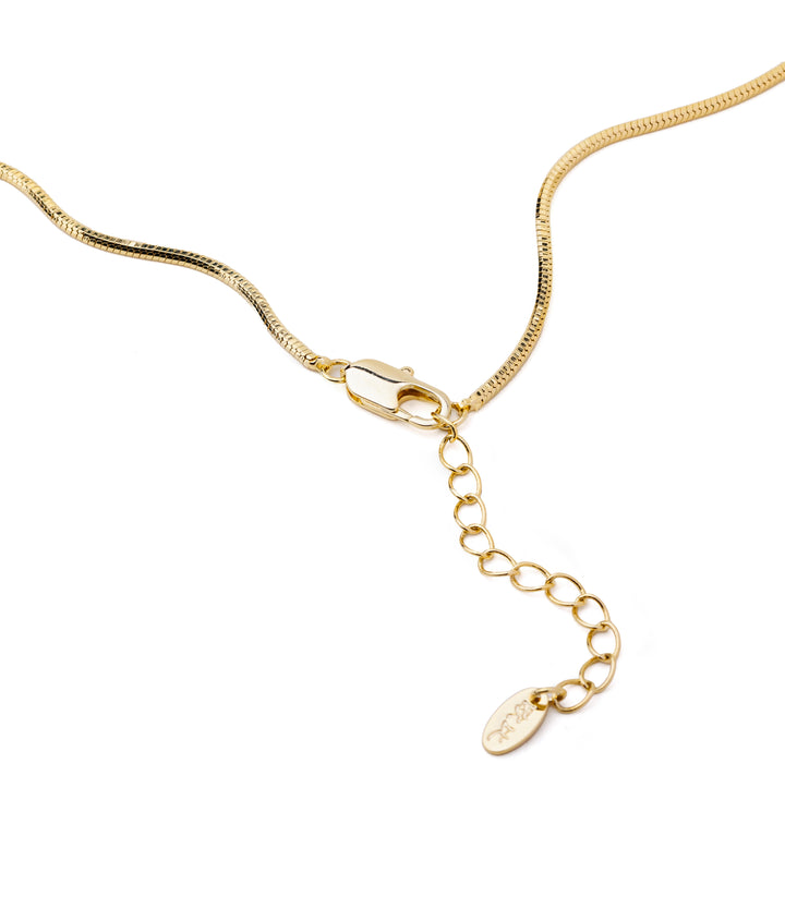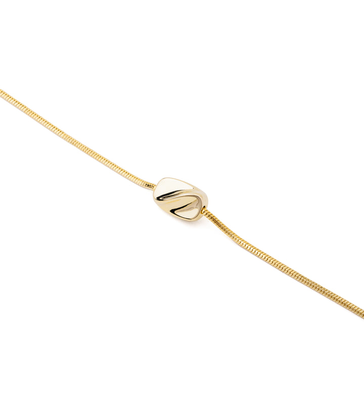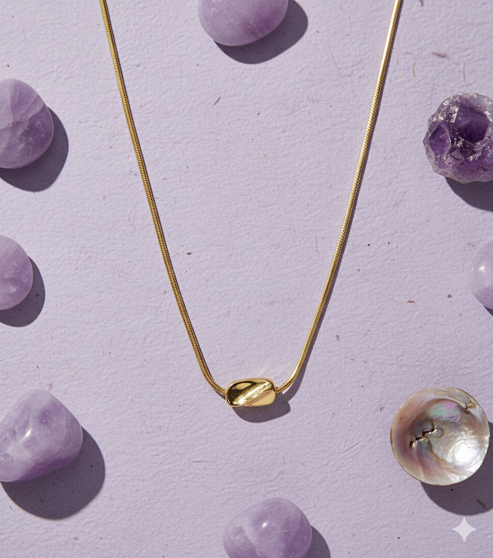 A minimal single chain featuring a sleek golden bar pendant at its center. Its straight-line design brings a touch of modern elegance that pairs effortlessly with any outfit. Wear it solo for a refined everyday look or layer it with dainty chains for added charm.