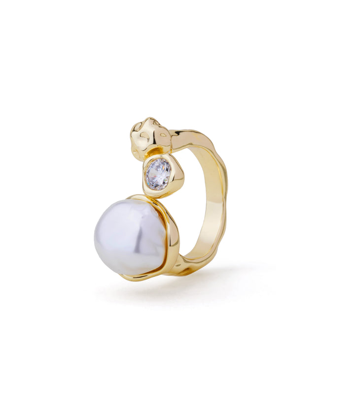 A bold design showcasing a large, lustrous pearl. Elegant and eye-catching, it’s made to stand out effortlessly.