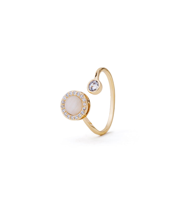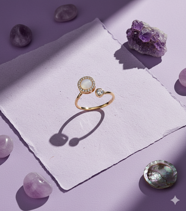 A sleek cat-eye stone set on a smooth spinner band, crafted to calm restlessness. Minimal yet meaningful, it blends elegance with comfort.