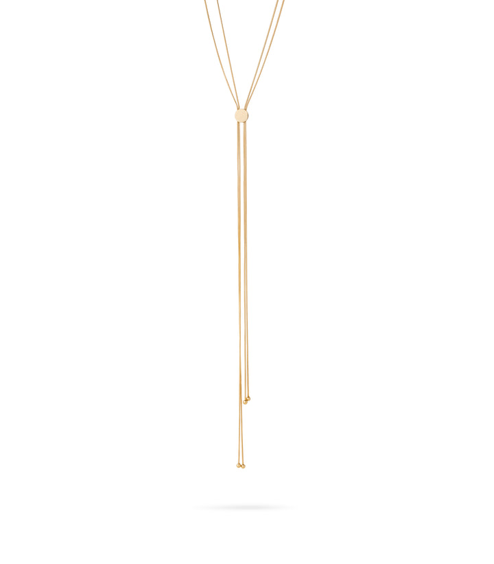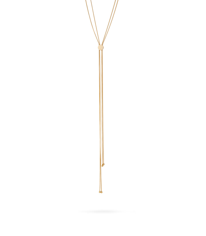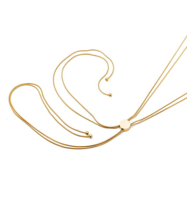 This long chain is designed with a minimal circle detail at its center, allowing you to adjust the length with ease. Its sleek and versatile style makes it a perfect piece to wear solo or layer with other necklaces. A simple yet modern design that adapts to both casual days and dressed-up evenings.