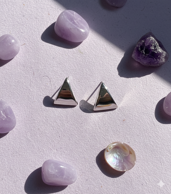 Minimal triangal silver studs with a sleek, modern edge. A go-to pair that adds just the right touch of shine to everyday style.