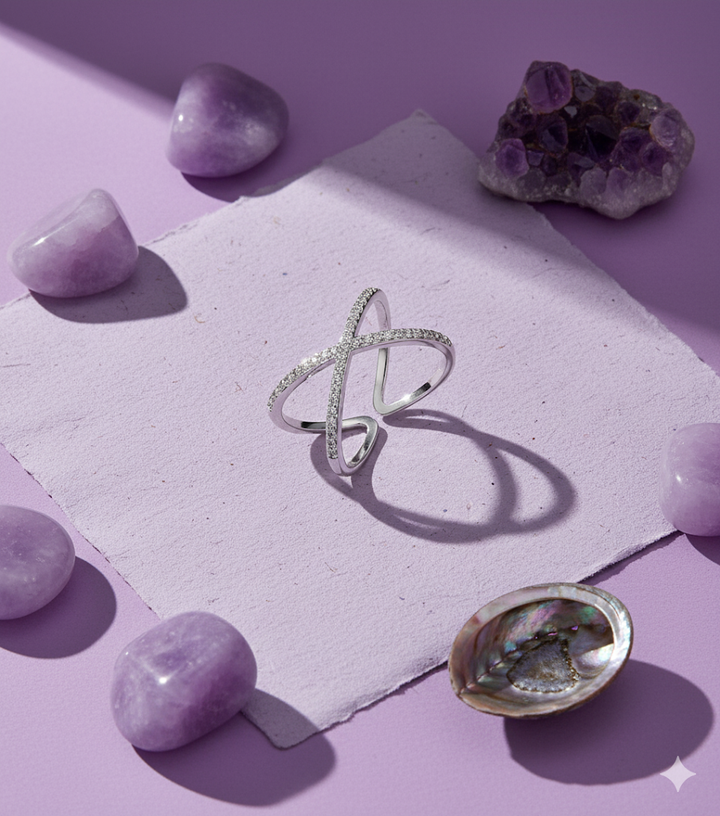 A sleek silver band featuring a minimalist cross design. Simple, modern, and effortlessly stylish.
