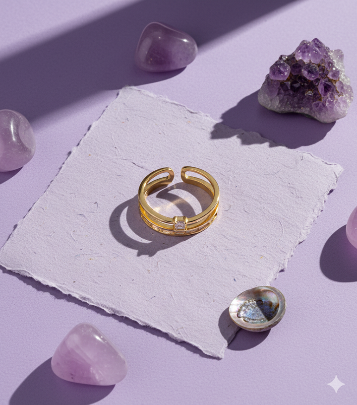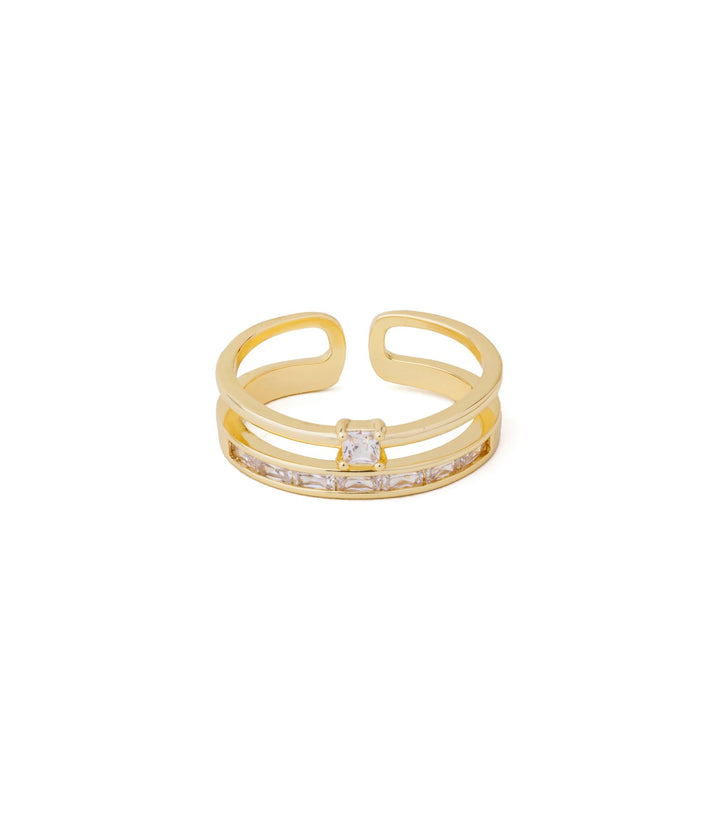 A minimalist design featuring two connected bands for subtle elegance. Perfect for layering or wearing alone for a delicate statement.