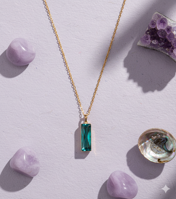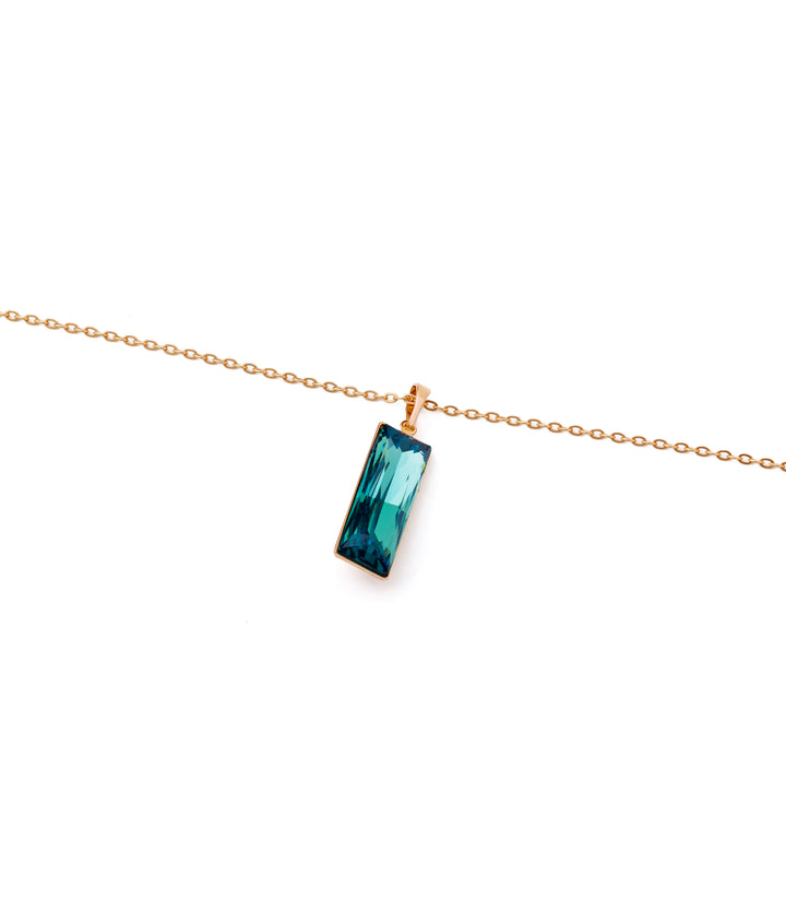 A timeless design featuring a striking rectangular emerald pendant as its centerpiece. The bold pop of green adds sophistication and elegance, making it a versatile piece for both day and evening wear. Perfect for layering with delicate chains or wearing solo for a refined statement.