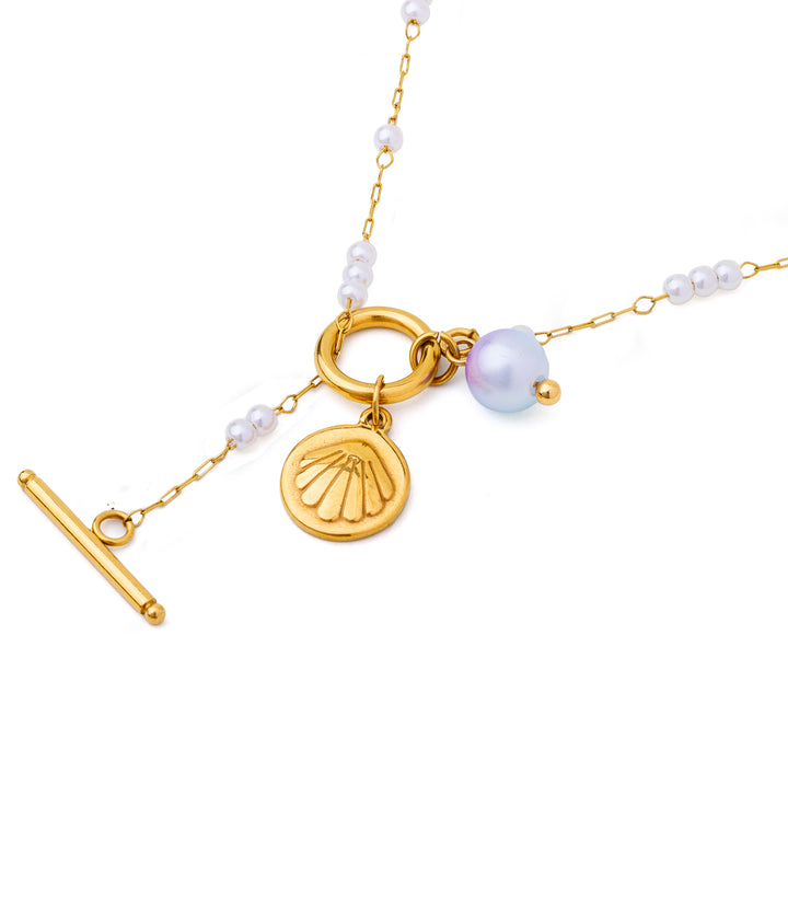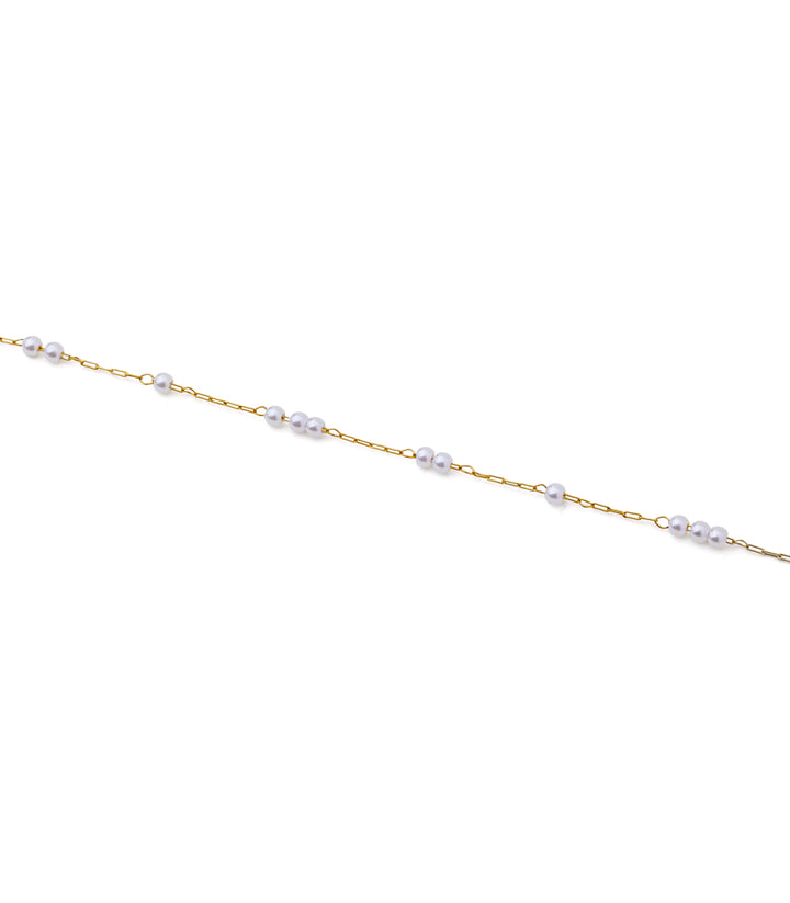 A graceful necklace adorned with pearl beads throughout. Its subtle gradient and delicate design bring a touch of elegance and sophistication to any outfit. Perfect for layering or wearing solo to highlight its refined, understated charm.