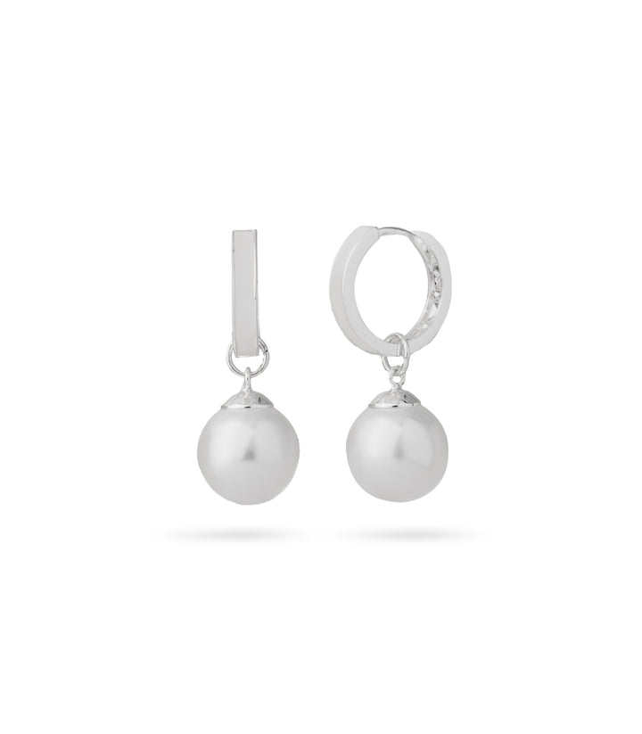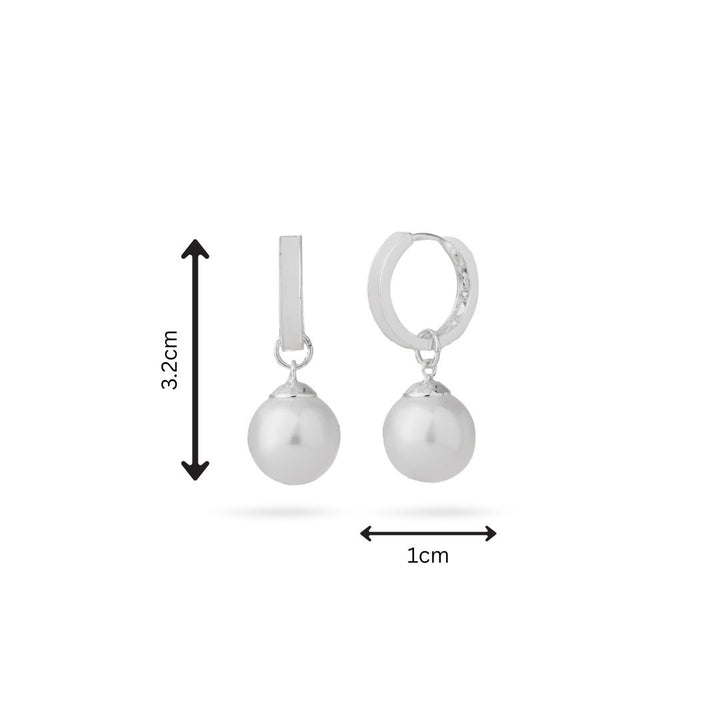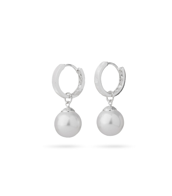 Graceful silver drop earrings featuring lustrous pearls for a timeless, elegant look. Perfect for adding sophistication to both casual and formal outfits.