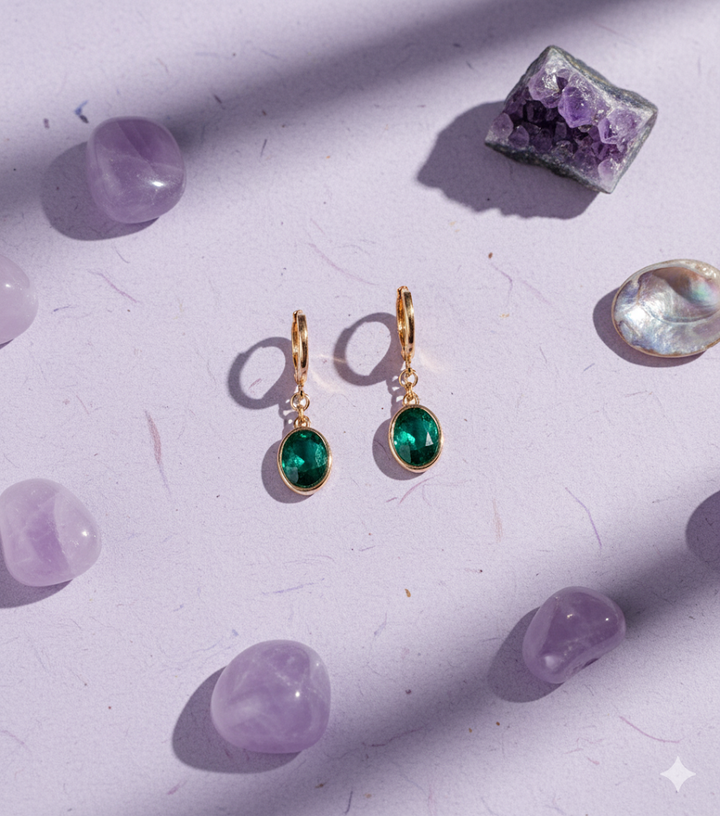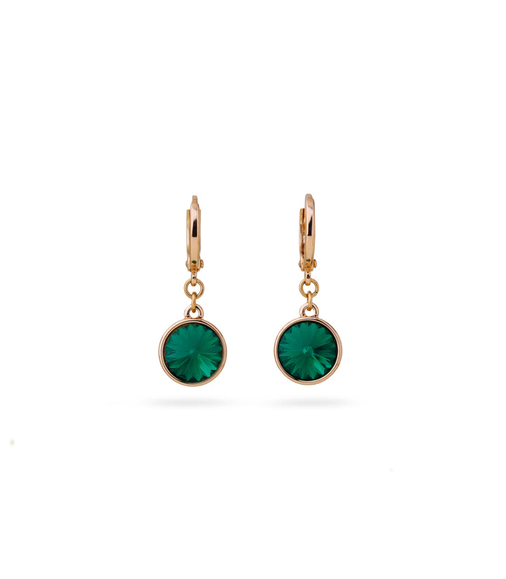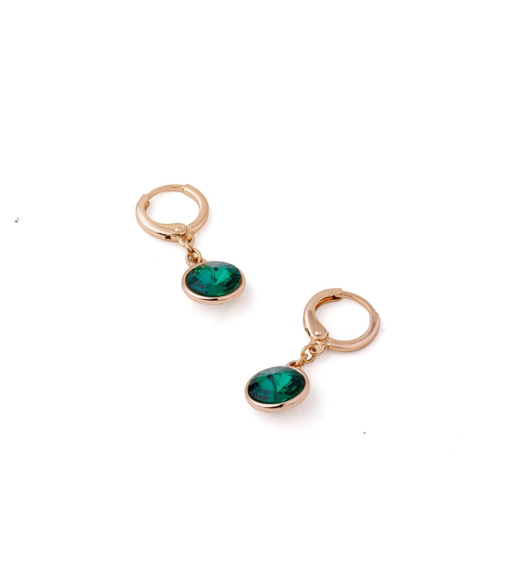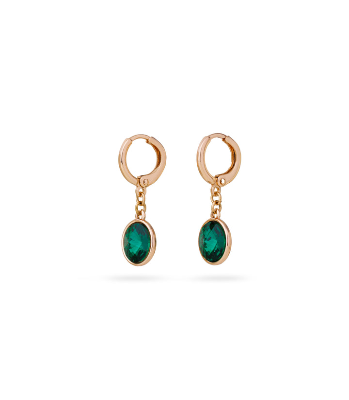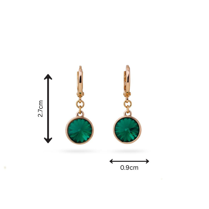 Delicate danglers featuring small emerald-like dots for a subtle pop of color. Perfect for adding a refined, elegant touch to any outfit.