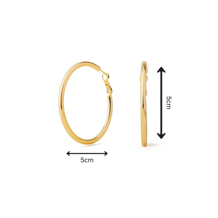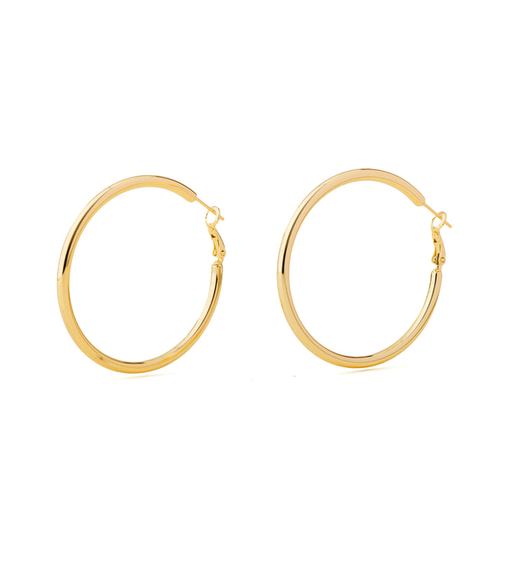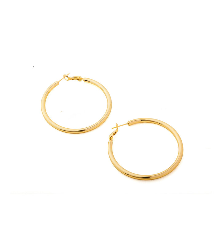 Classic gold hoops with a sleek, timeless design. A versatile staple that complements everyday looks as well as polished outfits.