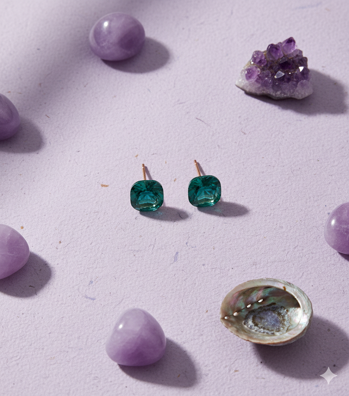 Delicate emerald studs which are perfect for adding a refined, everyday elegance to any outfit.