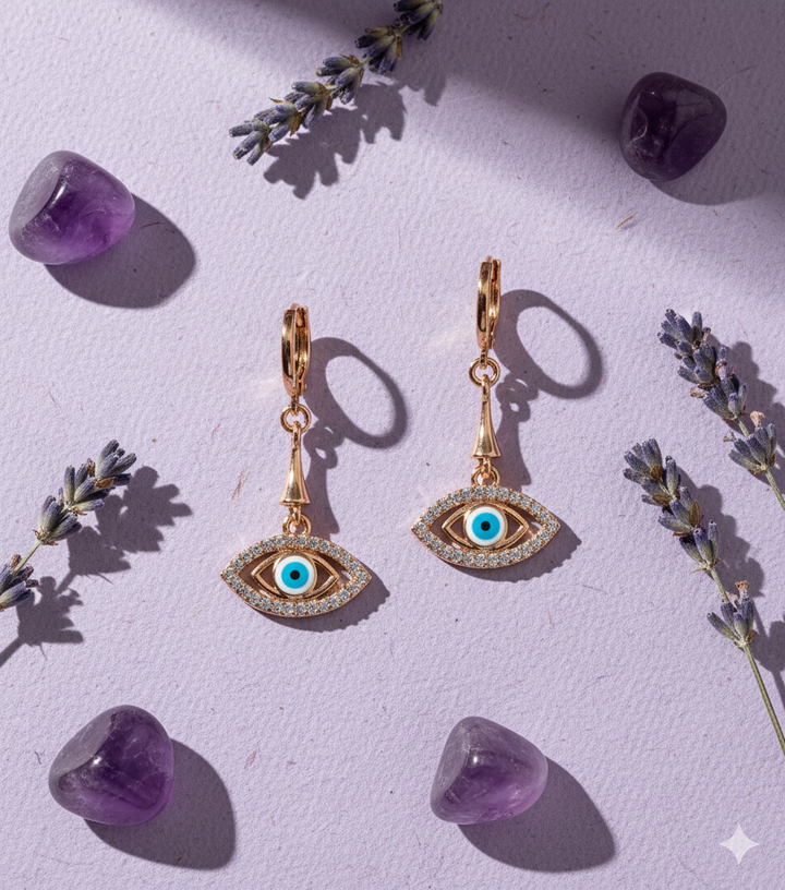 Delicate danglers featuring evil eye charm. Perfect for adding charm and a hint of mystique to any look.