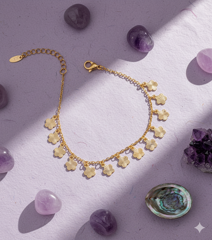A dainty chain of little blossoms that wraps your wrist in charm.Perfect for adding a fresh, playful touch to any look.