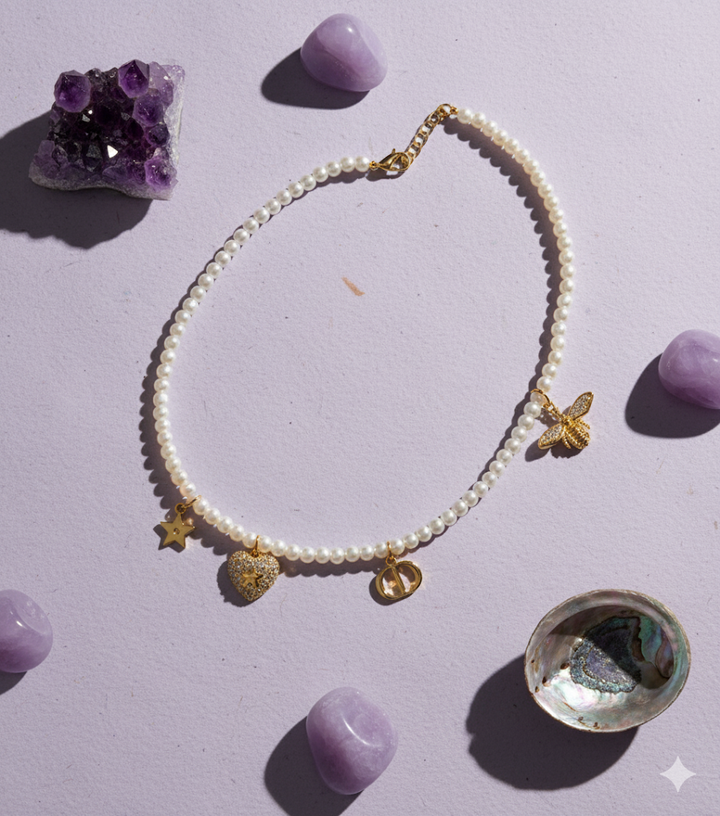 A whimsical chain adorned with dainty firefly and heart charms, capturing the magic of glowing nights and tender moments.