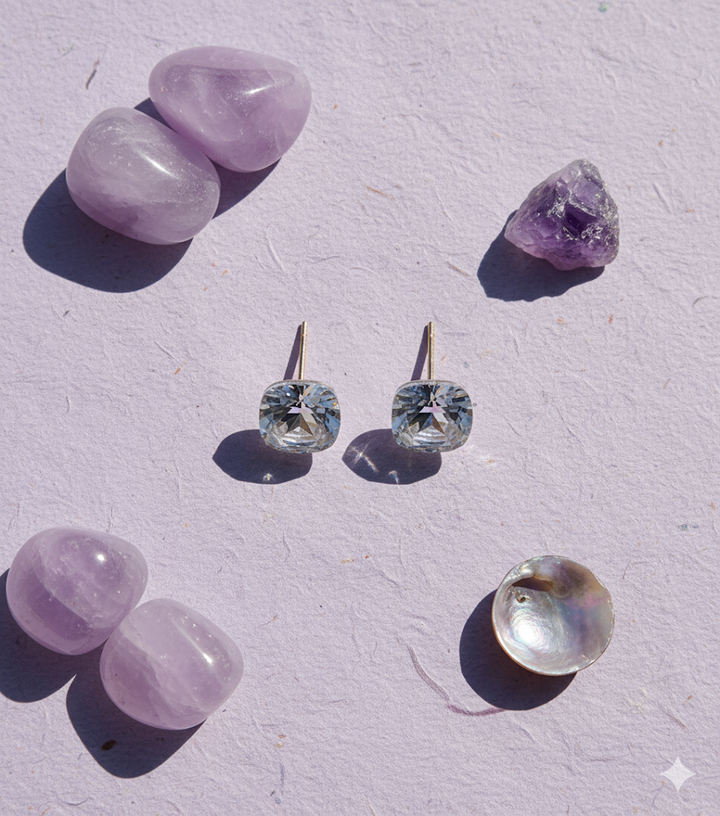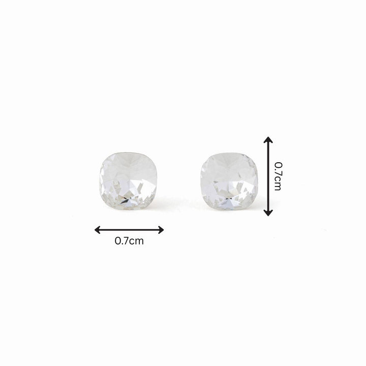 Tiny crystal studs with a subtle sparkle that can never go wrong. Style it up with necklaces or a dressy top.