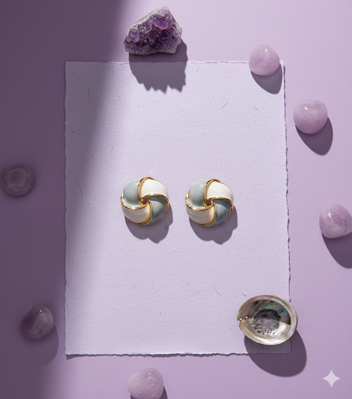 Delicate studs featuring a knot-inspired design with a subtle frost blue color. A minimal yet stylish pair that adds texture and charm to any outfit.