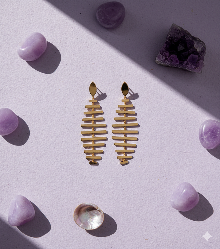 Unique danglers with a fish-skeleton inspired design that feels quirky yet chic. A fun statement pair to add personality and edge to your look.