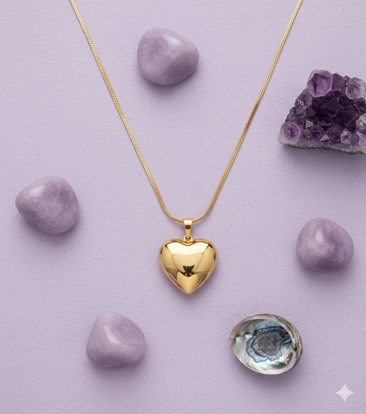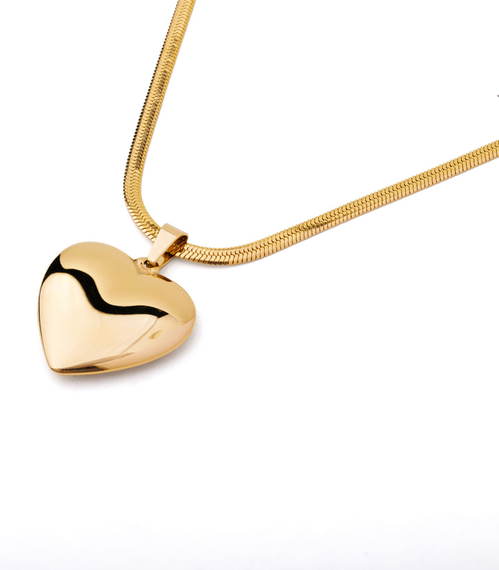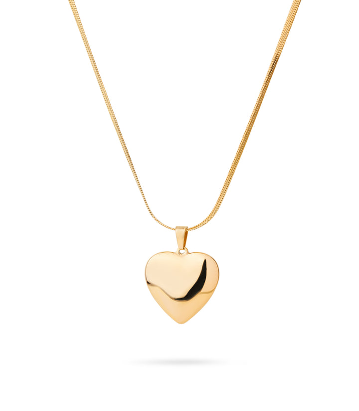 A classic necklace with a gold heart pendant. Its versatile design makes it easy to wear on its own for a minimal look or layer with chains for added dimension. A piece that transitions effortlessly from casual days to evening outings.