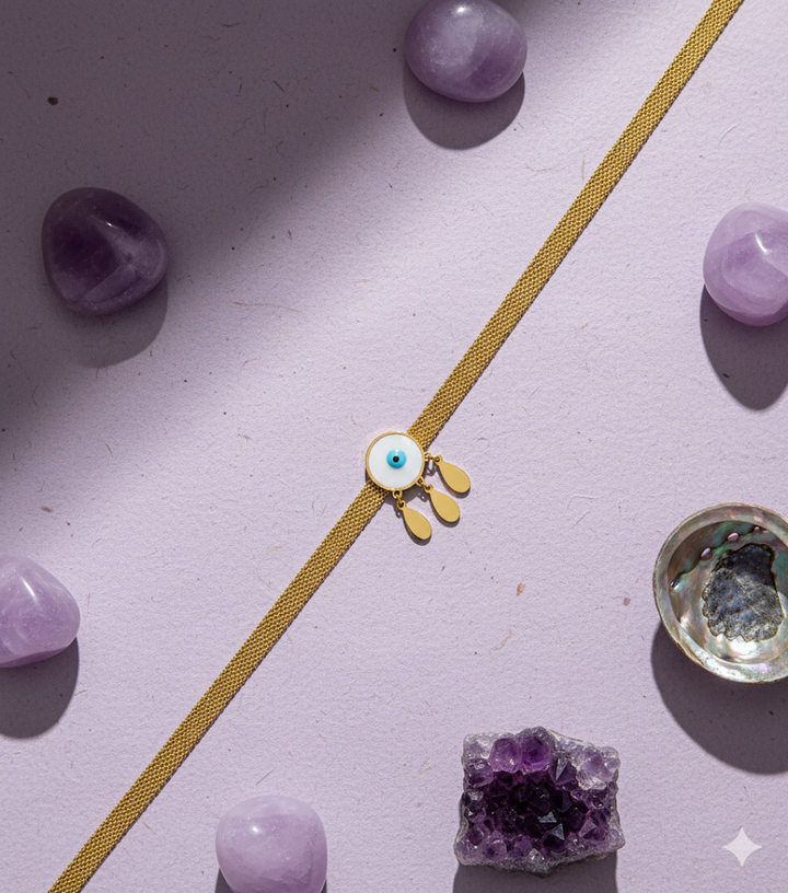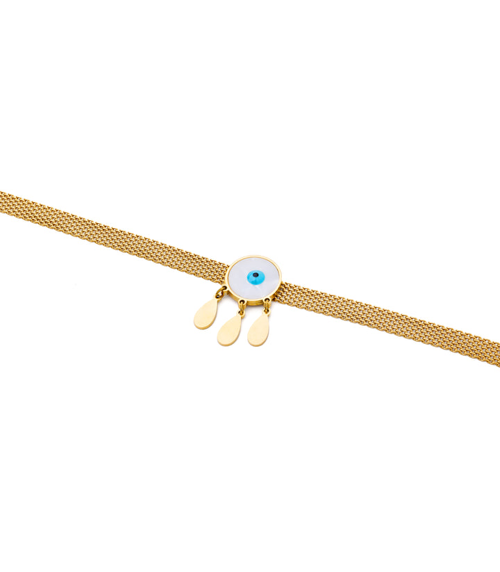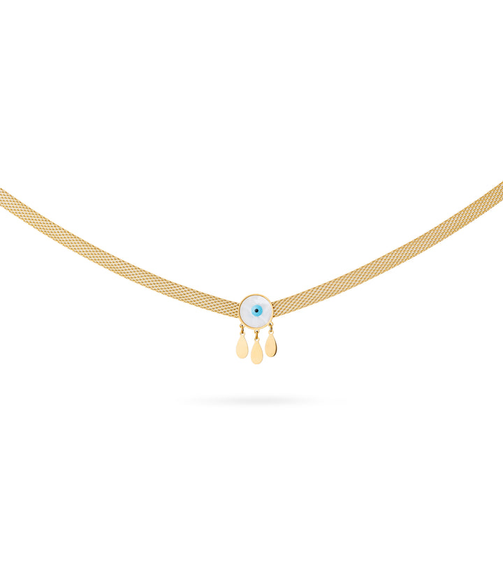 A bold, thick chain necklace featuring an evil eye pendant accented with delicate golden danglers. Its striking design adds both edge and charm, making it a perfect statement piece. Wear it solo for impact or pair it with simpler chains for a layered, contemporary look.