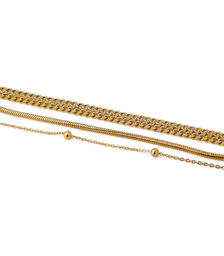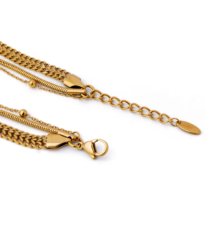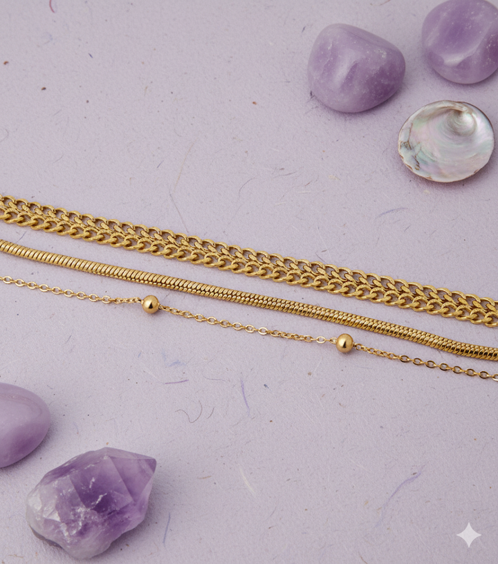 A double-chain bracelet with a subtle twist — one chain slightly bolder for a layered look.Minimal, chic, and effortlessly versatile.