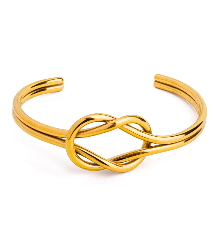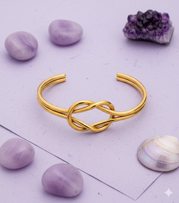 An open cuff with a subtle knot detail, blending simplicity with a touch of elegance. Sleek, modern, and effortlessly chic.