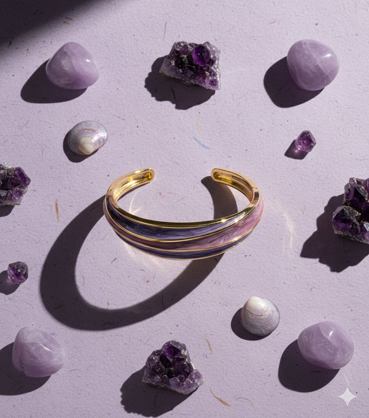 A delicate cuff with soft lavender tones, adding a dreamy and elegant charm to your look. Subtle, graceful, and effortlessly stylish.
