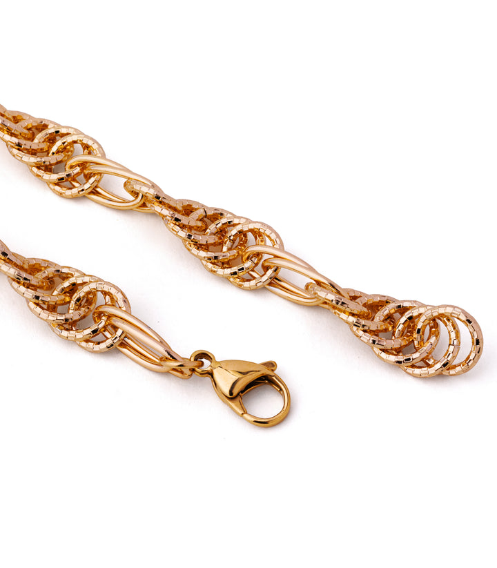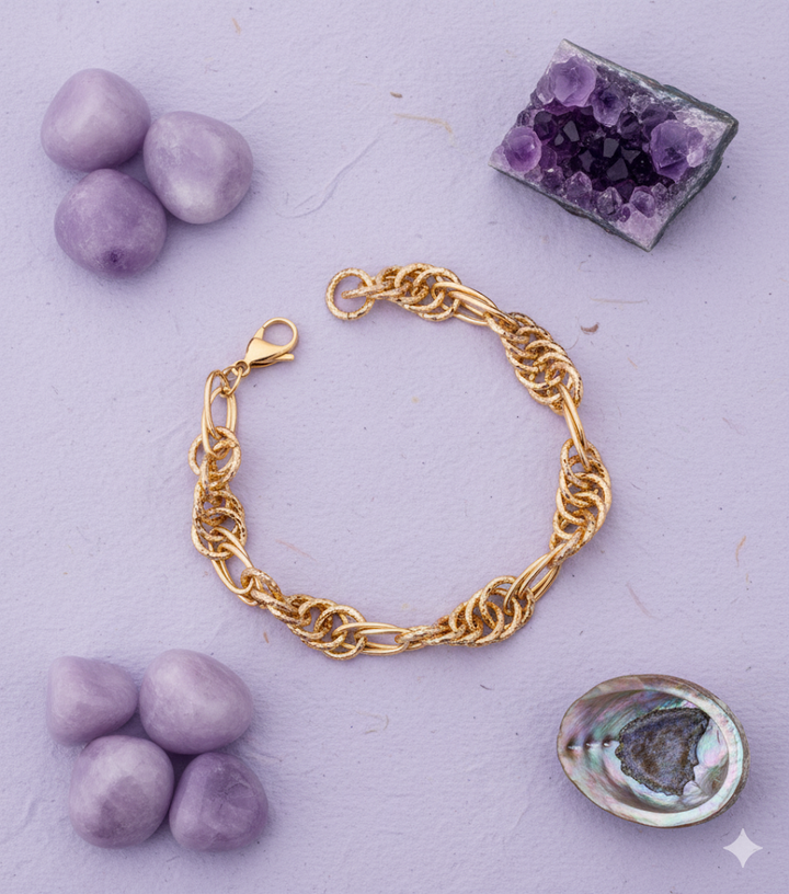 A sleek gold loop accented bracelet, blending modern edge with timeless elegance. Minimal yet striking for any occasion.