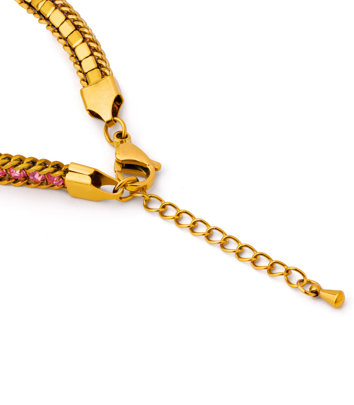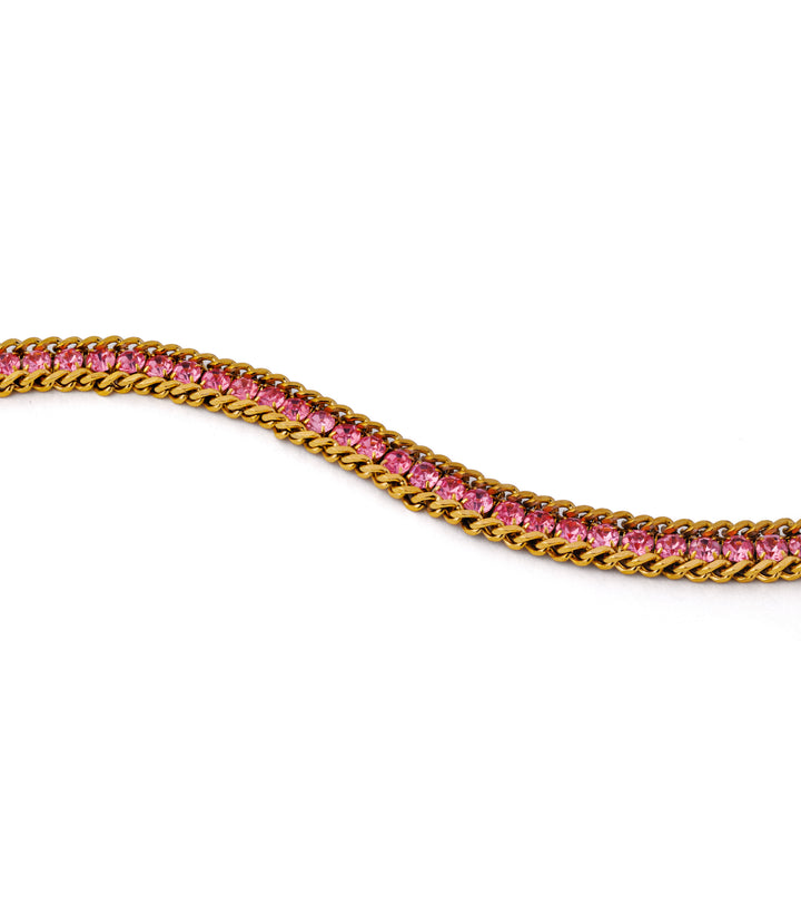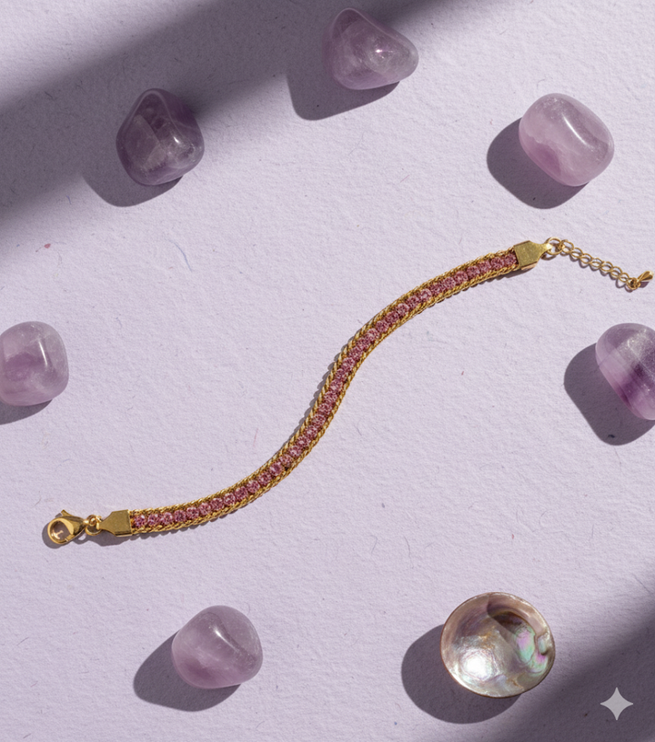 A sparkling bracelet adorned with pink rhinestones, adding a playful and feminine touch to your wrist. Bright, fun, and effortlessly stylish.