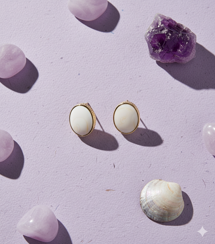 Simple studs with a smooth marble finish, bringing a touch of elegance to daily wear. A versatile pair that blends effortlessly with both casual and polished looks.