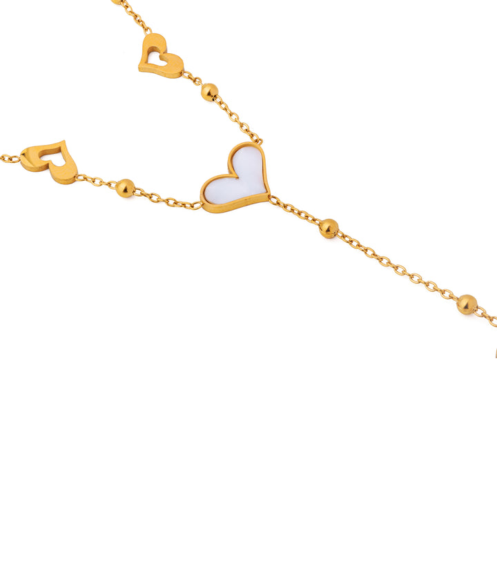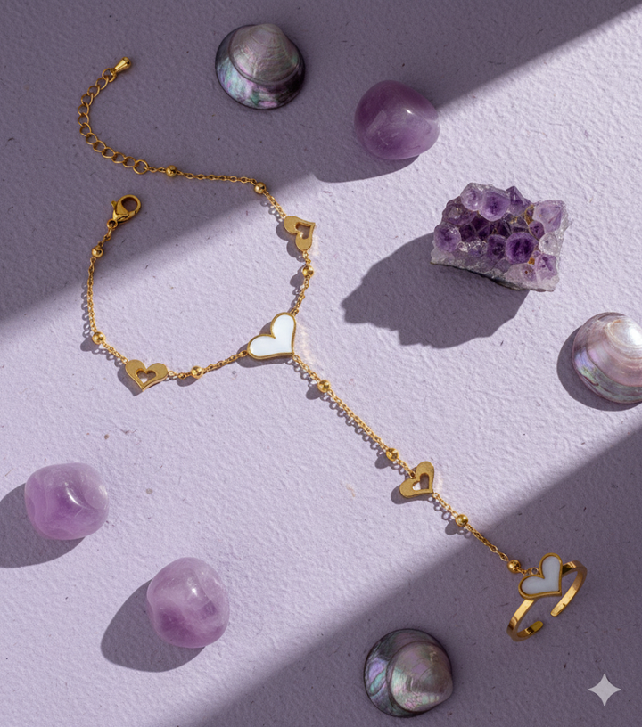 A delicate bracelet featuring a marble-patterned heart with an additional ring, blending elegance with a touch of whimsy.