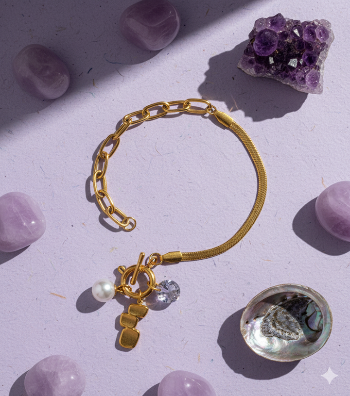 A sleek, delicate chain with tiny charms, perfect for a subtle touch of elegance. Simple, versatile, and effortlessly chic.