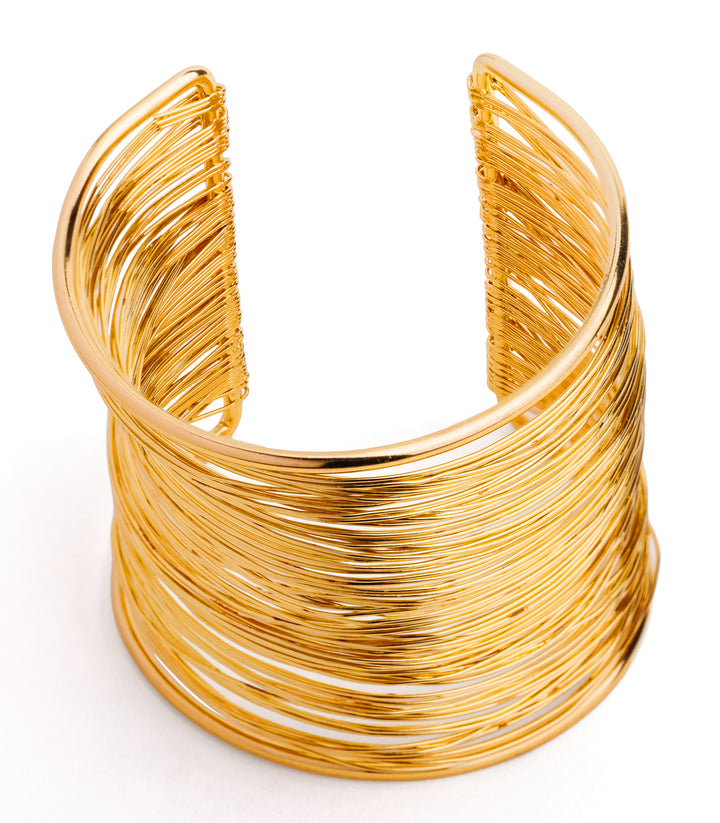 A bold and versatile cuff designed to complement any look. Pair it with a white maxi dress as a statement piece.