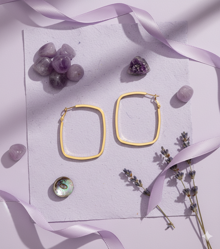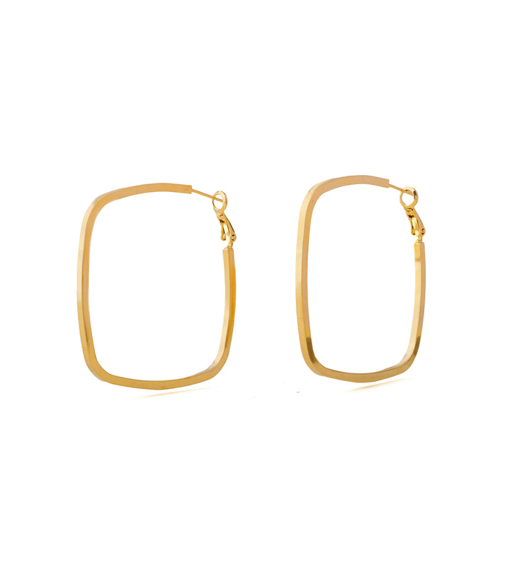 Chic square-shaped hoops with a modern, minimal design. A versatile pair that adds a contemporary edge to both casual and dressy outfits.