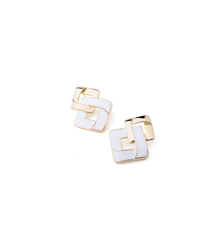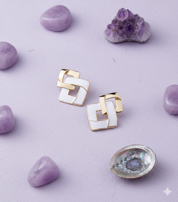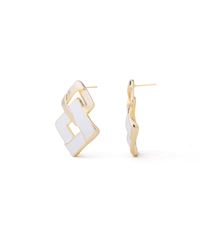 Elegant long studs featuring a blend of white and gold tones. A minimalist yet striking pair that adds sophistication to any outfit.