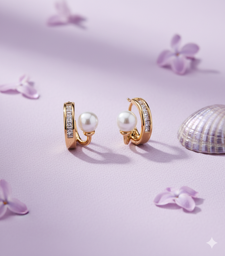 Delicate earrings featuring classic pearls with a refined, timeless design. Perfect for adding a touch of elegance to both casual and formal outfits.
