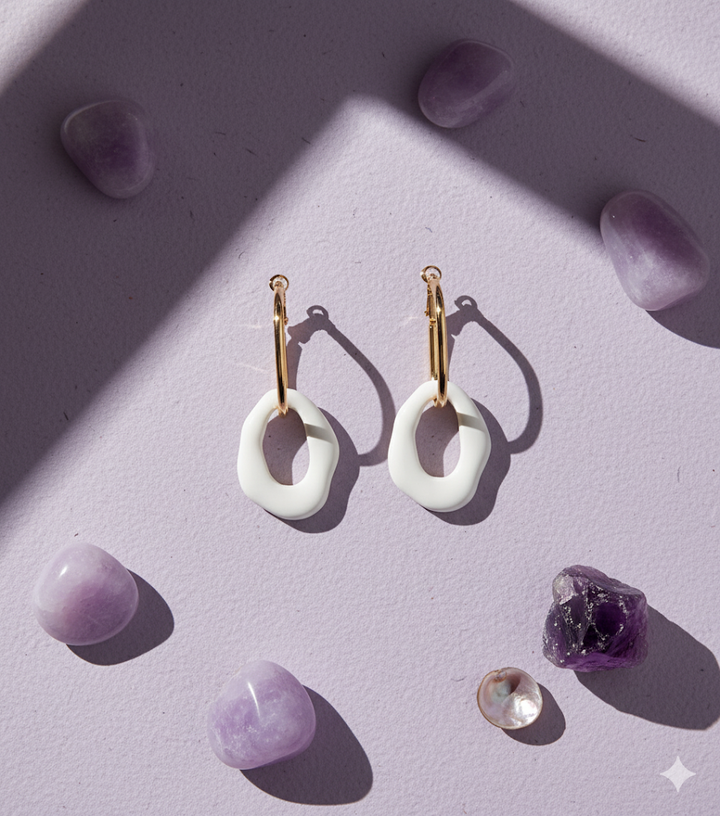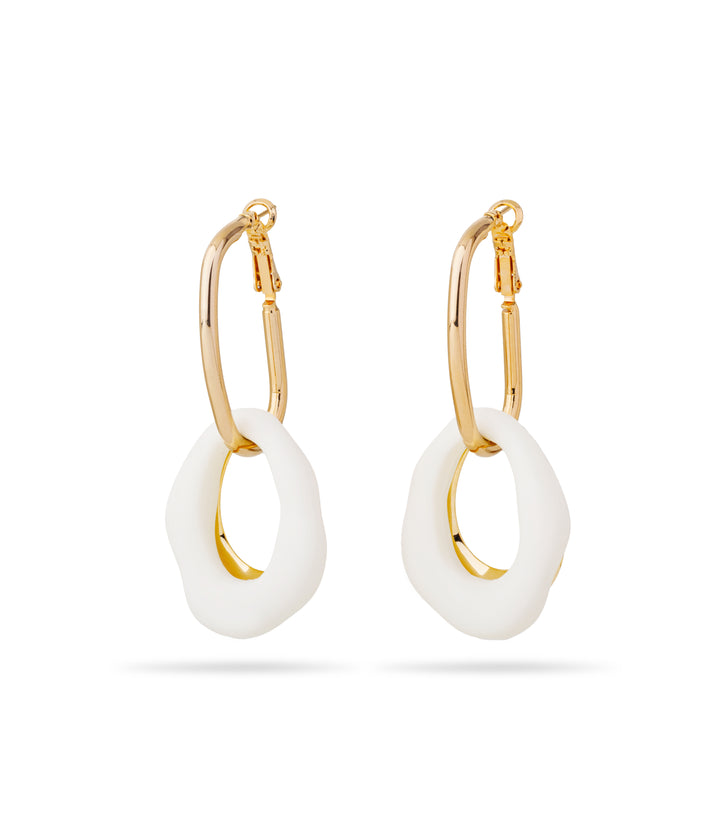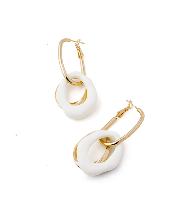 Sculptural oval-shaped earrings with a sleek, polished finish that feels bold yet minimal. A versatile pair that can elevate simple outfits or complement statement looks with ease.