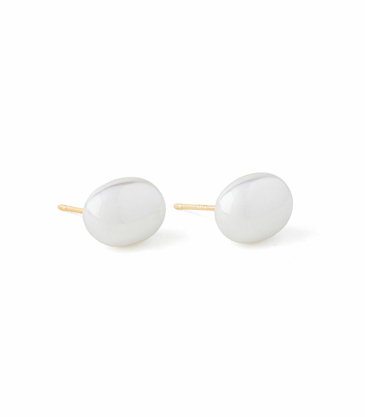 No perfume Pearl with a distinctive oval shape. Its most striking feature is its iridescent sheen, which creates a luminous, shimmering effect with soft, changing colors like a rainbow. The pearl appears to have a classic white or light body color that gives off a subtle, otherworldly glow.