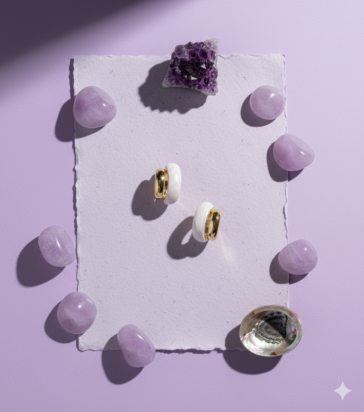 Chic hoops featuring a delicate pear-like marble along the curve. A stylish blend of classic elegance and modern design, perfect for both casual and dressy looks.