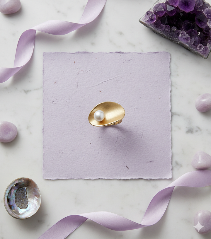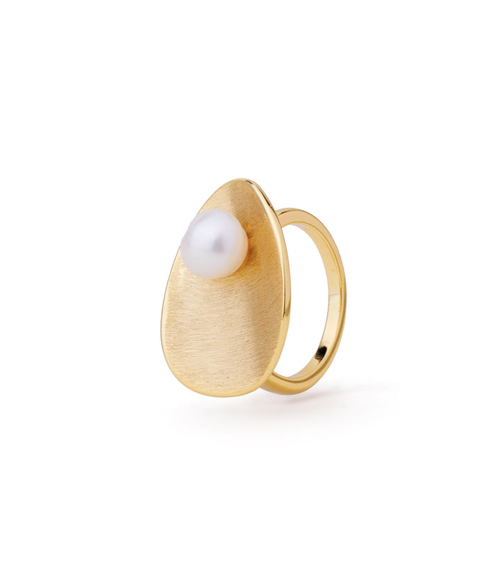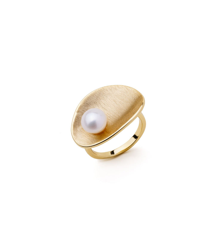 A golden shell-inspired design crowned with a luminous pearl. Elegant and unique, it brings a touch of ocean charm to your style.
