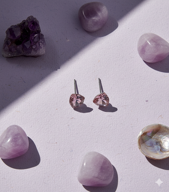 Geometric studs with a triangle shape, accented by diamond-like sparkle. A subtle yet stylish pair that fits seamlessly into both work and casual looks.