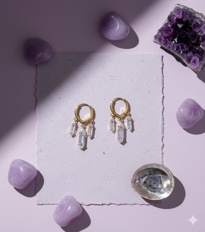 Elegant danglers with prism-inspired drops that catch the light beautifully. A refined pair that adds subtle shine, perfect for both day and evening wear.