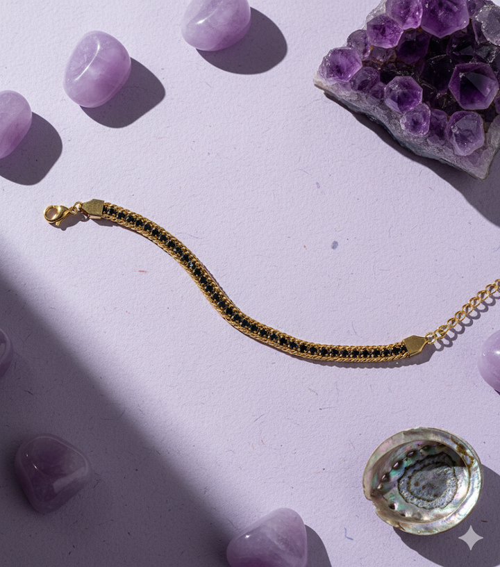 A luxurious bracelet encrusted with emeralds, perfect for pairing with a watch or stacking.