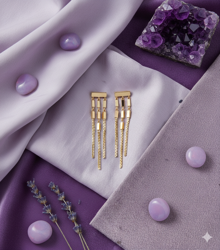 Elegant gold danglers with playfulness. Perfect for adding a quirk to an evening outfit.
