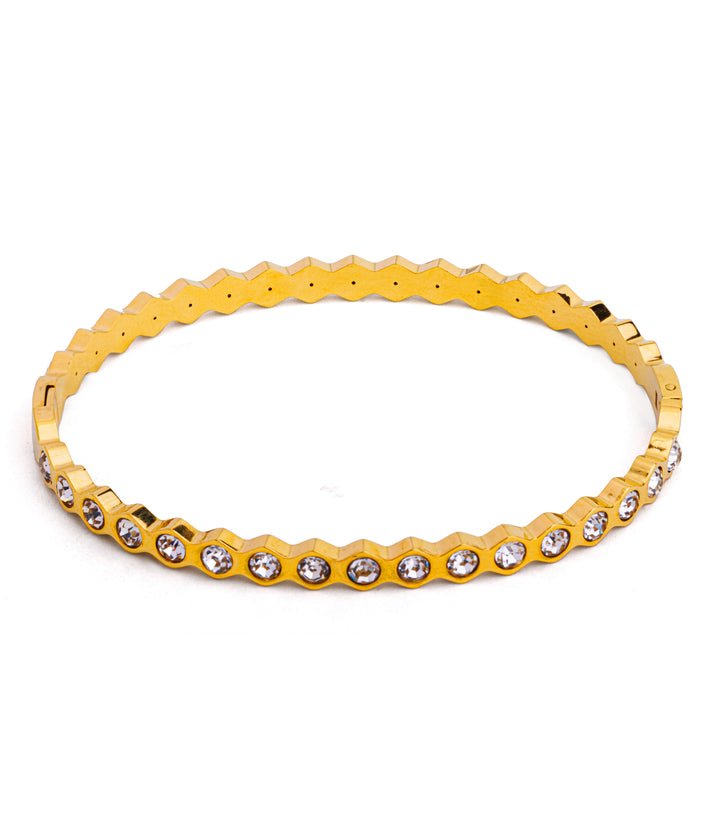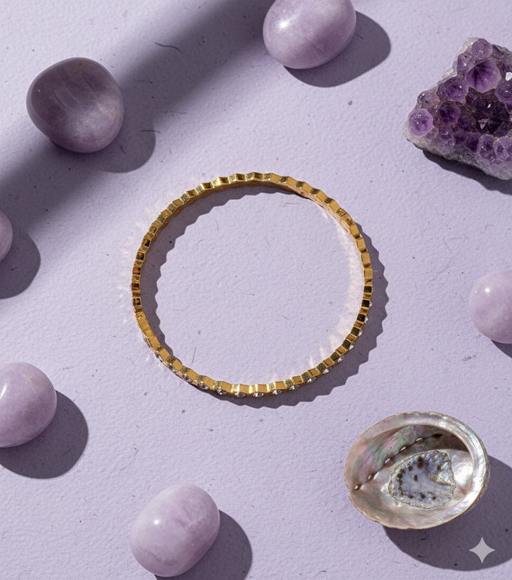A minimal yet dressy bangle with balanced design and subtle sparkle. Elegant, refined, and effortlessly versatile.