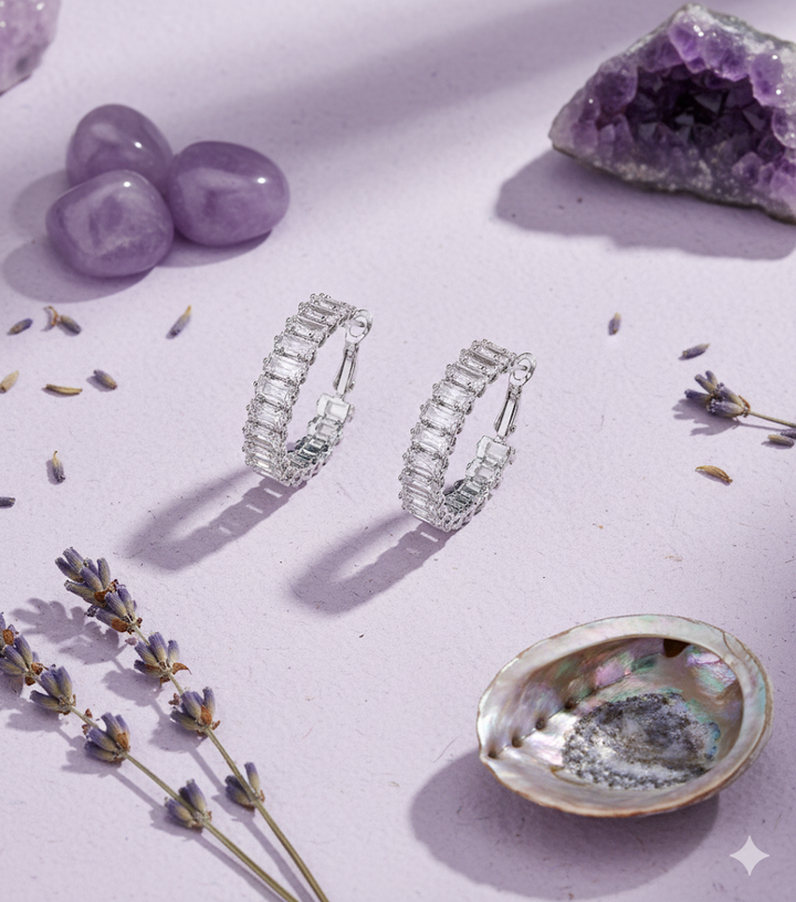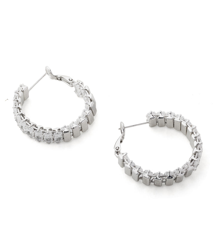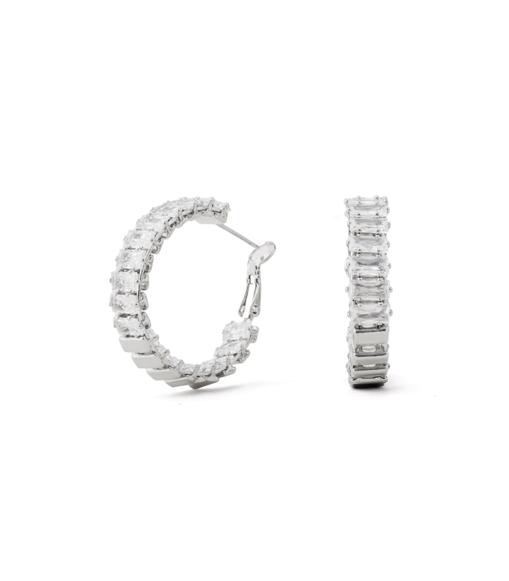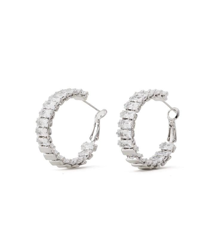 Shiny hoops with a diamond studded edge. A playful and eye-catching pair perfect for both day and night looks.