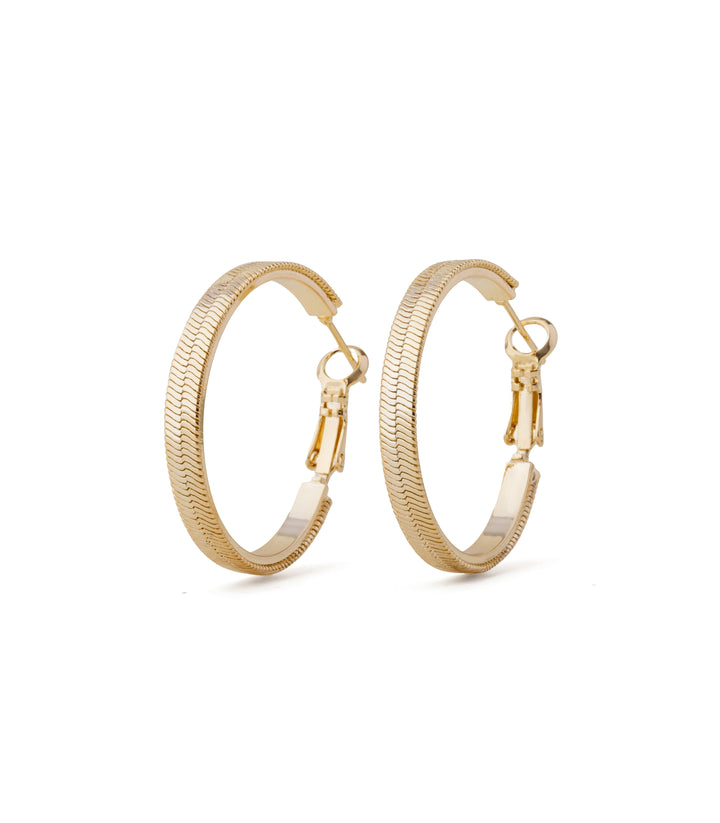 Sleek hoops featuring a textured snake chain design for a modern, edgy touch. Perfect for adding subtle statement style to everyday or layered looks.