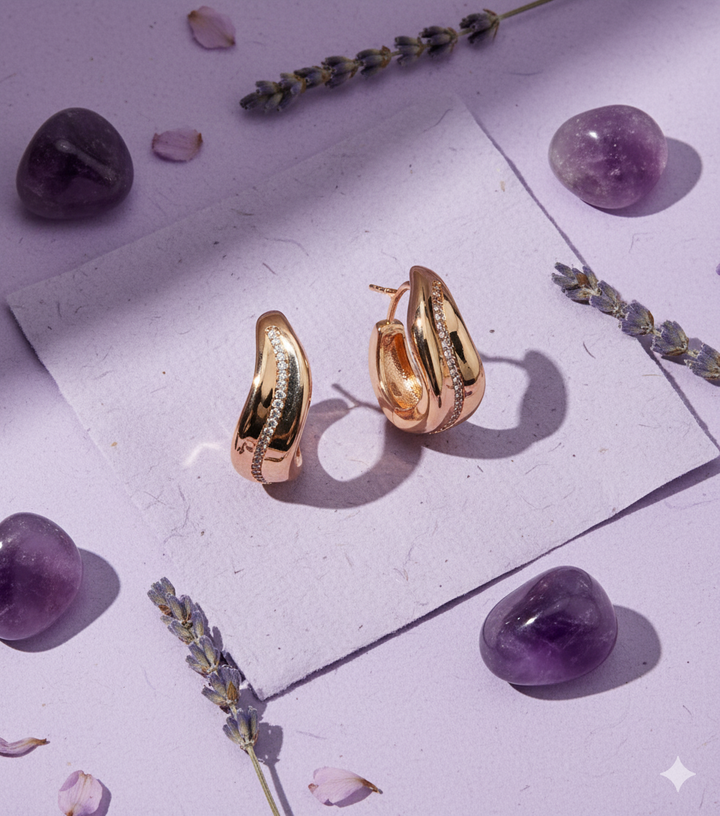 Bold gold hoops with a playful, statement-making design. Perfect for elevating any outfit with a modern, eye-catching twist.