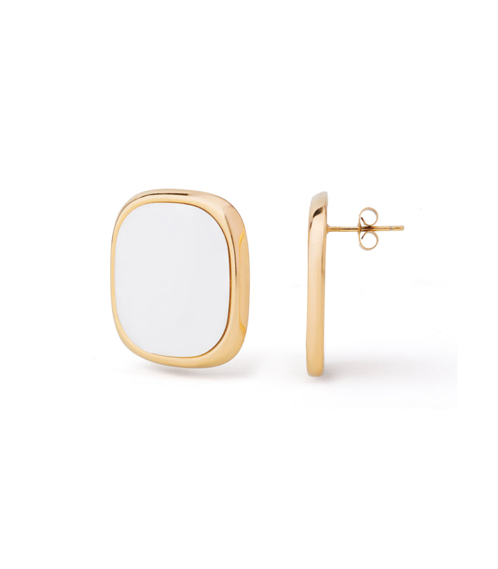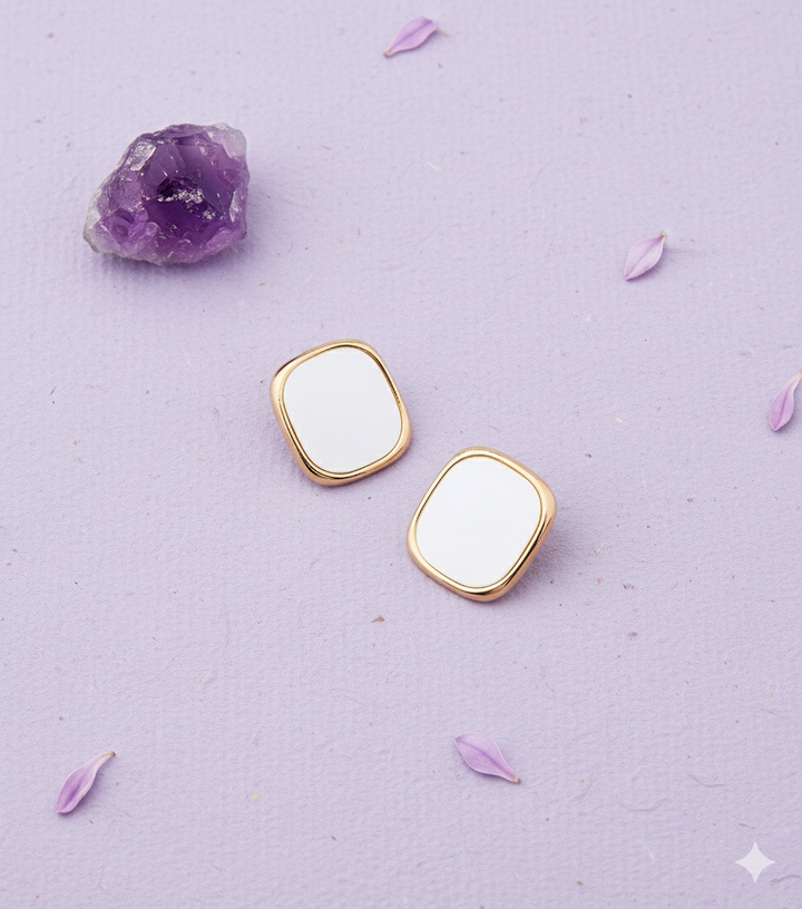 Square marble studs with a bold yet elegant design. A chic pair that adds a modern touch to both casual and dressy outfits.