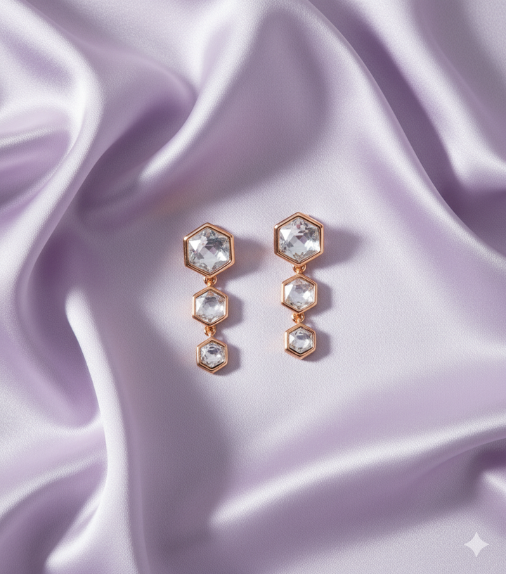 Elegant dangler featuring three delicate stones that hangs beautifully. A subtle yet striking pair perfect for both casual and evening looks.