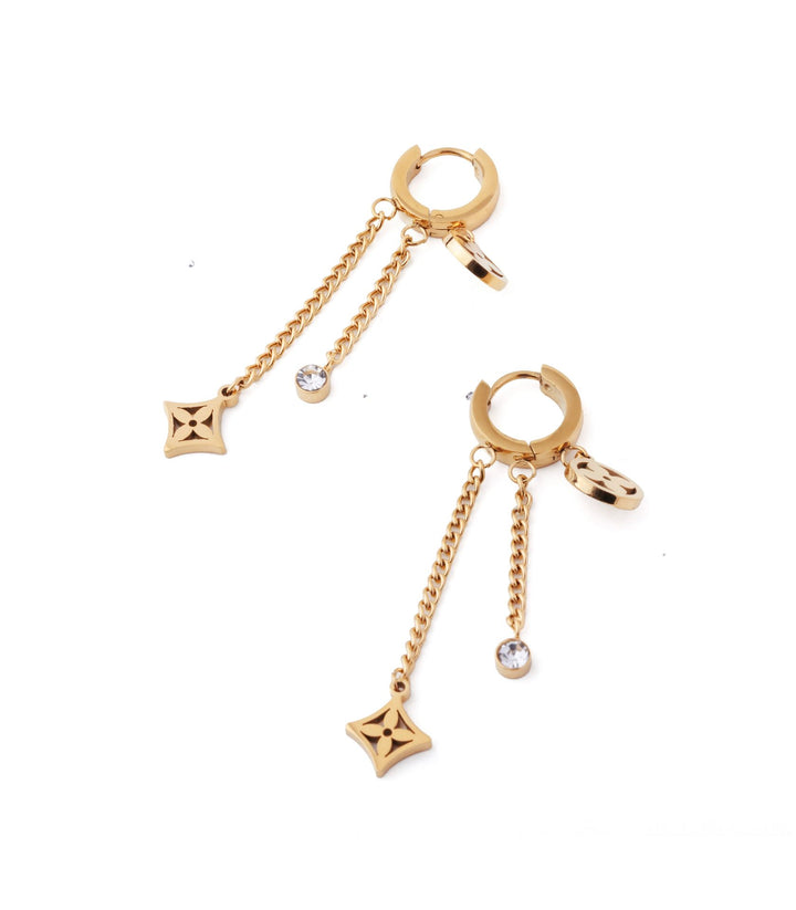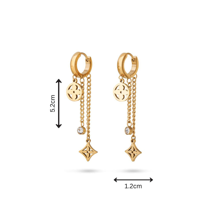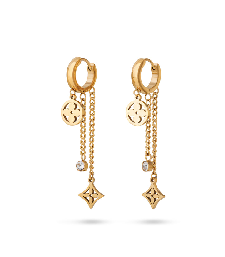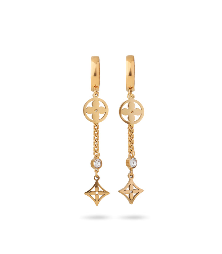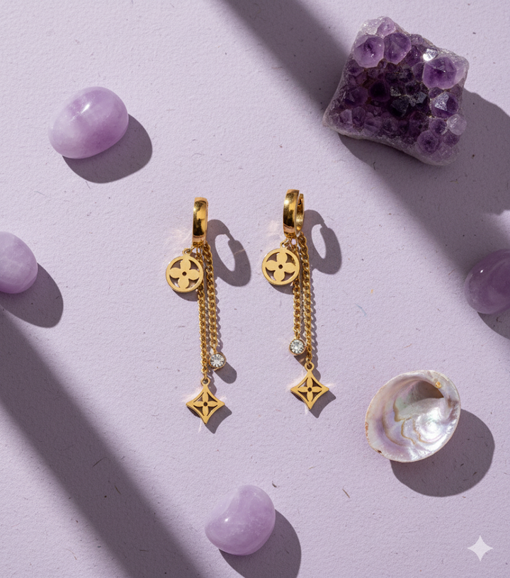 Playful yet refined, these gold danglers bring a touch of charm and elegance to any outfit.