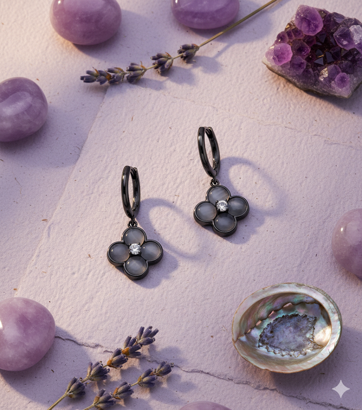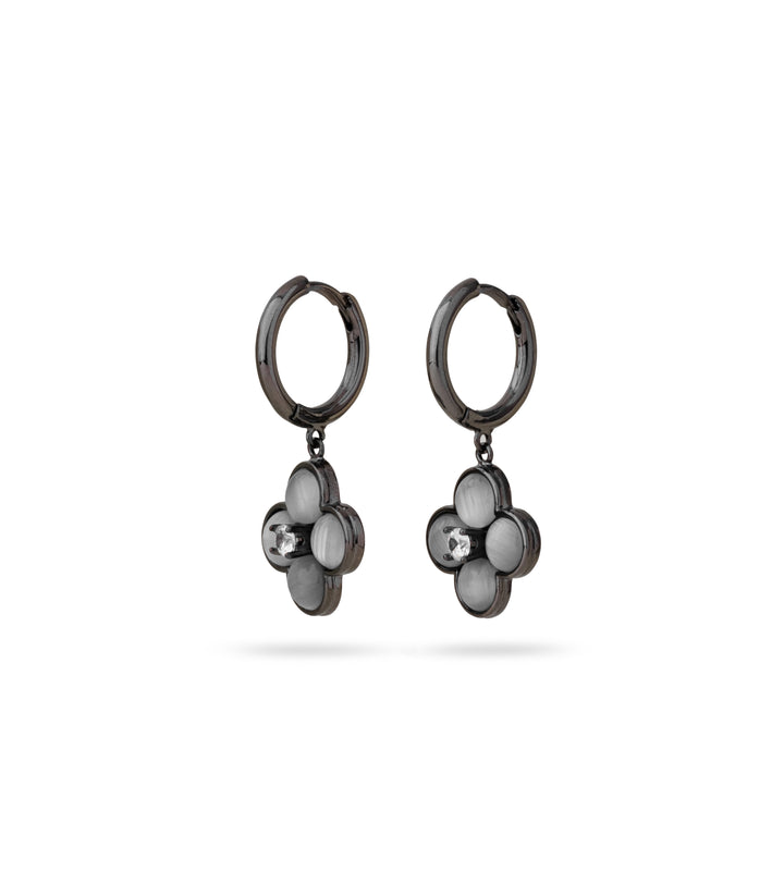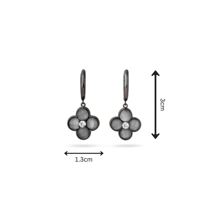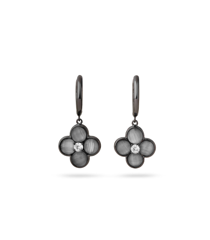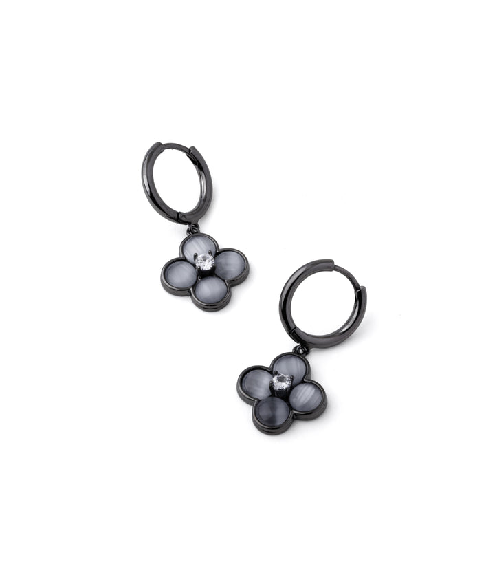 Elegant danglers featuring a black flower charm. Perfect for pairing with simple tops and dresses.